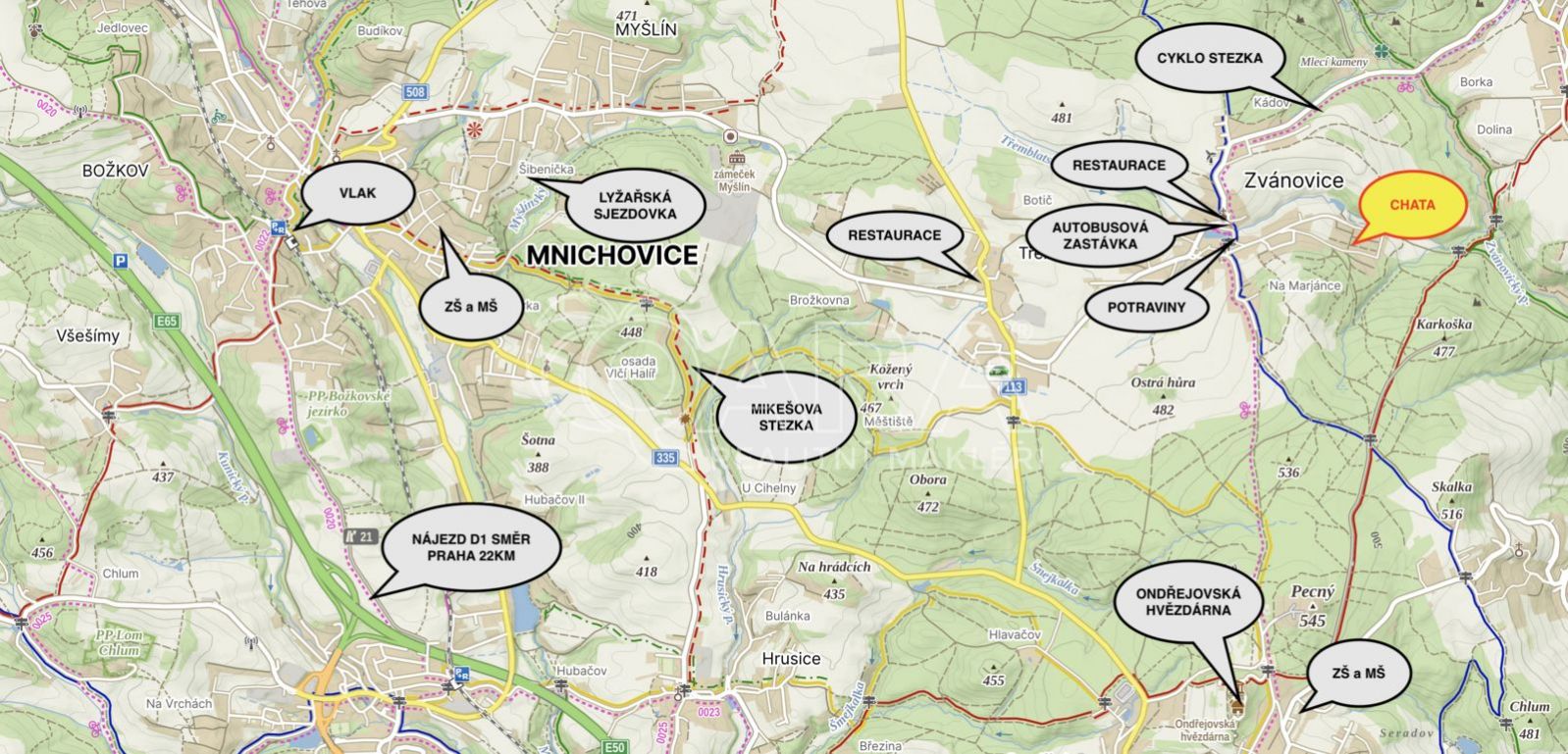 Nabízíme k prodeji útulnou chatu o velikosti 60 m se sklepem (+14 m) a úložným prostorem pod chatou (cca +20 m), která se nachází na úpatí Národního parku Voděradské Bučiny u obce Zvánovice ideální místo pro klidný odpočinek i aktivní trávení volného času.