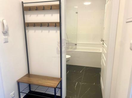Byt má dvě koupelny (1x koupelna s vanou a wc, 1x samostatný sprchový kout, 1x samostatné wc), halu, komoru a balkon do vnitrobloku. Byt je plně vybavený a moderně zařízený.