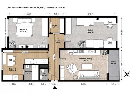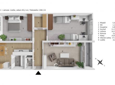 Prostorný byt v klidné části s prostornou zahradou ve vnitrobloku (3+1) s 77m2 + lodžie 4m2 (a 3 neprůchozí pokoje)