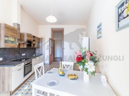 Byt je ve 4.patře s výtahem. Byt má plně vybavenou kuchyňskou linku - varná deska, digestoř, trouba, mikrovlnka, lednice, myčka, pračka se sušičkou. Byt je zařízen.