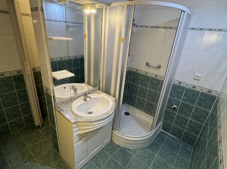 V prostorné koupelně je sprchový kout, umyvadlo a pračka. WC je samostatné. Obývací pokoj je vybaven novou sedací soupravou a obývací stěnou.