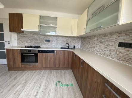 V bytě je nainstalovaná kuchyň s veškerými spotřebiči: lednice, mrazák, myčka, sporák trouba, atd.
