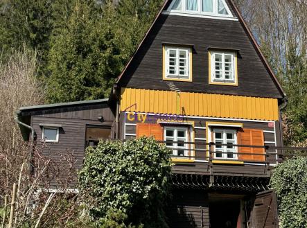 Když stojíte u vjezdu na pozemek, máte pocit, že jste se ocitli v pohádce a před očima máte krásnou malovanou chaloupku. Nenechte se ale mýlit, budete překvapeni velikostí stavby, která má navíc přiděleno číslo popisné, nikoliv pouze evidenční. Zastavěná plocha je necelých 70 m2, avšak chata má 3 obytná patra. Celková obytná plocha je tak cca 170 m2 + garáž + úložné prostory na nářadí. Na pozemku je navíc postavena velká samostatná dílna.