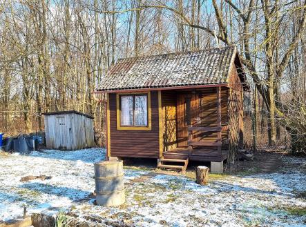 Na zahradě je dále k dispozici dřevěná bouda pro uskladnění nářadí a fóliovník.