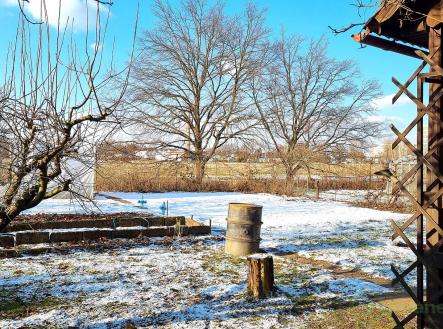 Celková výměra pozemku k užívání činí 344 m2 (16 m2 stavební parcela a 328 m2 zahrada). Na zahradě je k dispozici voda z vlastní kopané studny společné se sousedem, ve které je osazeno vlastní čerpadlo. Pozemky jsou pronajaty od města.
