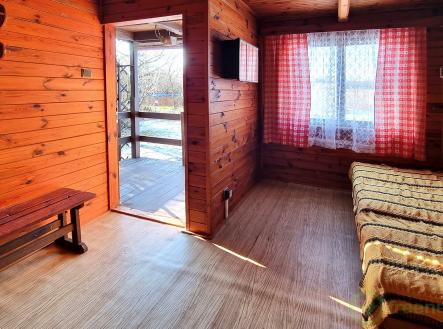 Chata je přízemní dřevěný objekt o výměře 16 m2, který obsahuje jednu obytnou místnost, krytou verandu pro posezení, sklad a dále úložný prostor v podkroví přístupný ze skladu. Do chaty je zavedena elektřina. Stavba chaty je v osobním vlastnictví.