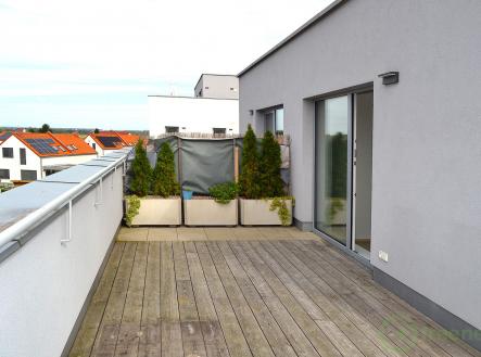 Nabízíme k prodeji výjimečný zděný byt o dispozici 3+kk v centru Pardubic, ke kterému náleží prostorná terasa s praktickým venkovním skladem, sklep a venkovní parkovací stání. Byt je situovaný v 5.NP bytového domu s výtahem postaveného v roce 2019. Díky unikátní poloze bytového domu ve vnitrobloku najdete v místě netušený klid, ačkoliv jste prakticky v samém centru Pardubic. Byt je optimálně orientován okny všech obytných místností na jih, francouzské okno na terasu je orientováno na východ. Při vstupu do bytu Vás zaujme jeho praktická dispozice, kdy z centrální chodby jsou přístupné veškeré místnosti - obývací pokoj s kuchyní s přístupem na terasu s venkovním skladem, pokoj, ložnice, koupelna, samostatné wc a velmi užitečná samostatná technická místnost pro umístění pračky, sušičky a pro skladování. Byt je zařízen ve velmi vysokém standardu značkovou kuchyňskou linkou s vestavěnými spotřebiči (včetně vestavěné vinotéky), kvalitními zařizovacími předměty a velmi praktickými vestavěnými skříněmi. Rozlehlá terasa nabízí od jara do podzimu úžasné rozšíření do venkovních prostor, přitom poskytuje dostatek soukromí a klidu, třebaže je byt situován prakticky v centru města. Veškeré potřeby pro spokojené užívání terasy lze snadno uchovávat ve zděném venkovním skladu přístupném přímo z terasy. Podlahová plocha bytu činí 78,6 m2. Terasa s venkovním skladem mají výměru 27 m2 (nad rámec podlahové plochy bytu). S bytem se nabízí k prodeji současně sklep (nebytová jednotka) o výměře 2,6 m2. Součástí prodeje je dále vyhrazené venkovní parkovací stání (stání se prodává formou převodu spoluvlastnického podílů na pozemku). V domě je dále k dispozici společná kolárna. Připojeny jsou elektřina, obecní vodovod a kanalizace, optický internet. Vytápění a ohřev vody jsou zajištěny dálkově. Provozní náklady na bydlení jsou velmi nízké. Vlastnictví osobní. Lze financovat hypotečním úvěrem. Volný po zaplacení. Neváhejte nám zavolat pro zjištění podrobností o tomto unikátním bytě a pro sjednání osobní prohlídky.