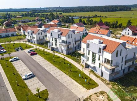 elektřina, vodovod, plyn, kanalizace, metropolitní optická síť. K bytu o čisté obytné ploše 66 m2 dále náleží prostorný balkón o výměře 8,37 m2 a také sklep o výměře 2,37 m2. K bytu náleží vyhrazené parkovací stání přímo před domem (parkovací kartičku vydává na žádost obecní úřad). Bytový dům je zděný, kvalitně zateplený, s centrálním plynovým podlahovým vytápěním a centrálním plynovým ohřevem teplé vody (vše má samostatné měření pro byt s dálkovými odečty). Byt bude vybaven kuchyňskou linkou včetně spotřebičů a velkou vestavěnou skříní v předsíni. Fotografie interiérů jsou