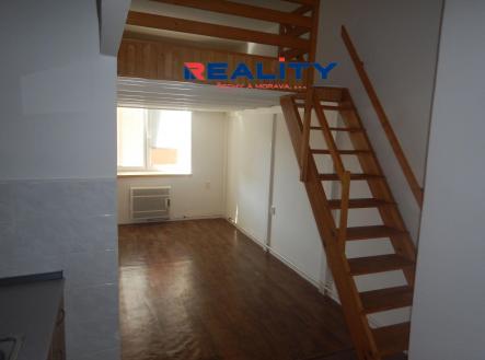 Dispozice zahrnuje kuchyňský kout spojený s pokojem, vyvýšené lůžko, prostornou koupelnu s WC a samostatnou spíž v chodbě. Byt se nachází v těsné blízkosti náměstí Míru, kde je k dispozici kompletní občanská vybavenost.