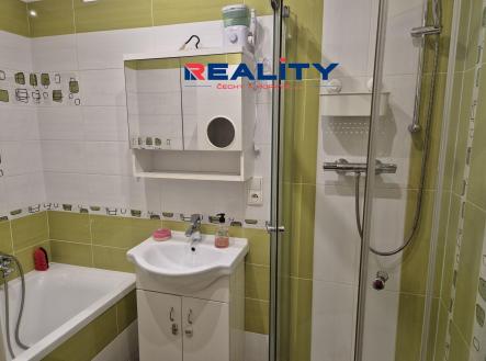 V koupelně je umístěna vana i sprchový kout, což poskytuje příjemný komfort.