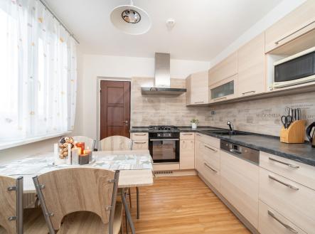 Byt je v pěkném stavu, který umožňuje jeho okamžité užívání. Vhodný je také jako investiční nemovitost k pronájmu. Pro modernější bydlení bych doporučovala byt zrekonstruovat. Velkou výhodou je, že jeden z pokojů lze přidáním příčky přepažit dva menší pokojíky tak, aby dospívající děti měly vlastní prostor. Kuchyň je pěkně uspořádaná a je zde dostatek místa pro jídelní stůl, což zaručuje pohodlné stolování pro celou rodinu. Ze západně orientovaného obývacího pokoje je výstup na lodžii, ze které si užijete výhled do zeleně.