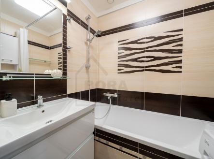 Koupelna je vybavena vanou, toaleta je umístěna samostatně. Byt nabízí velmi praktické uspořádání s neprůchozími pokoji, což zajišťuje maximální soukromí pro všechny členy domácnosti. V předsíni je místo na velkou vestavěnou skříň, kde uložíte oblečení i sezónní věci. K jednotce náleží sklep o velikosti 2,25 m². V bytě jsou plastová okna, v obývacím pokoji je balkonová stěna prosklená až k podlaze. Dům je bezproblémový s příjemnými sousedy a správu vykonává funkční SVJ.