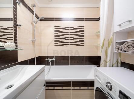 Vkusně zrekonstruovaná koupelna je vybavena vanou, toaleta je umístěna samostatně. Byt nabízí velmi praktické uspořádání s neprůchozími pokoji, což zajišťuje maximální soukromí pro všechny členy domácnosti. V předsíni najdete velkou šatnu s regály na oblečení i sezónní věci. dispozici je dále technická místnost, kam se bez problémů vejde pračka, sušička i kombinovaný plynový kotel, který pro byt zajišťuje vytápění i ohřev teplé vody. K jednotce náleží prostorný sklep o velikosti 7m2. Dům je nově zateplený, čistý. Správu vykonává funkční SVJ.