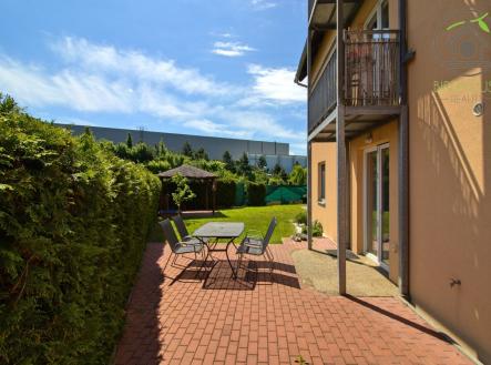 K bytu náleží vlastní předzahrádka o výměře 123 m², která představuje ideální místo pro venkovní posezení, relaxaci, grilování nebo pěstování. Získáte tak komfort bytu s výhodami domu.