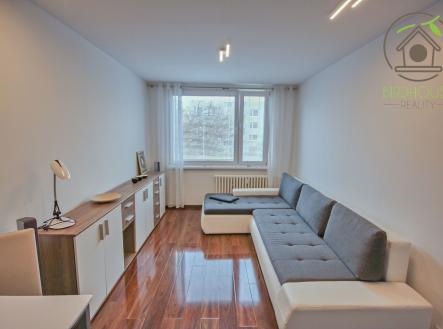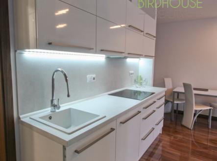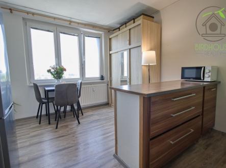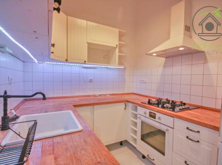 Byt je skvěle dispozičně řešen a zahrnuje tři samostatné pokoje, kuchyni a obývací pokoj s přímým vstupem na balkón. Kuchyně je kompletně vybavena moderní vestavěnou linkou, včetně indukční varné desky, horkovzdušné trouby, mikrovlnné trouby, myčky nádobí, moderní digestoře a velké lednice s mrazákem. Moderní koupelna disponuje sprchovým koutem a díky prakticky řešenému prostoru se zde nabízí místo pro pračku i sušičku. Dále je v bytě k dispozici i samostatné WC.