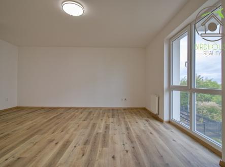 Byt se skládá z obývacího pokoje s kuchyňským koutem, ložnice, koupelny s WC, prostorné komory a předsíně. Obývací pokoj s kuchyní má celkem 28 m2 a díky velkoformátovým oknům je zde po celý den dostatek světla. To samé platí i o ložnici, která nabízí kromě přímého vstupu na prostorný balkón také vestavěné skříně a klimatizační jednotku.