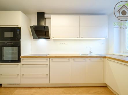 Co vás jistě zaujme, je prostorná kuchyně, která je vybavena novou kuchyňskou linkou s promyšleným designem a nabízí spoustu úložného prostoru. Kuchyně je kompletně vybavena vestavěnými spotřebiči, včetně indukční varné desky, horkovzdušné trouby, mikrovlnné trouby, myčky nádobí, moderní digestoře a velké lednice s mrazákem.